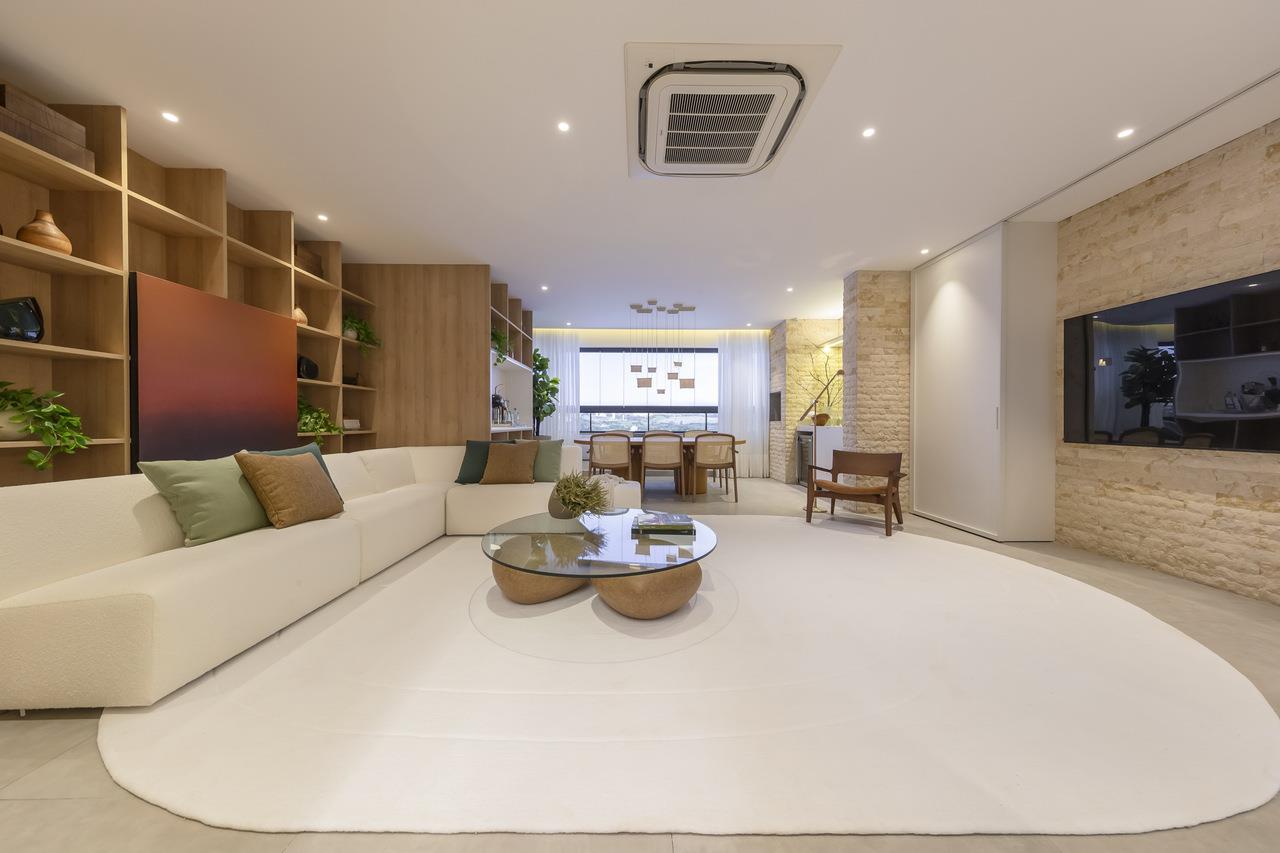 * Sala estendida integrada à varanda gourmet com churrasqueira